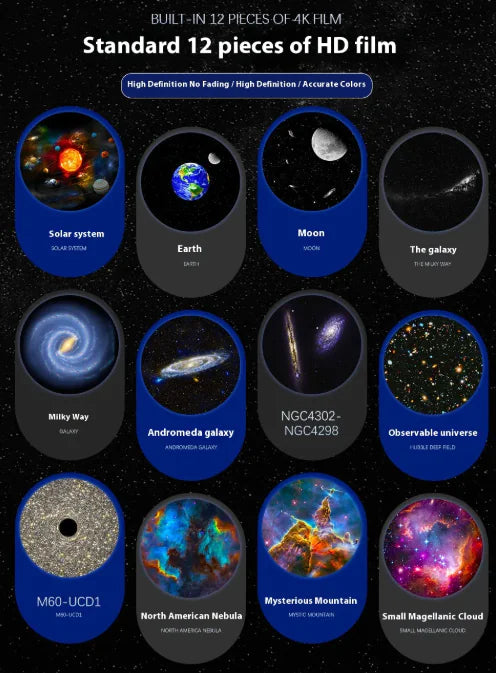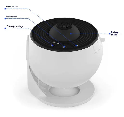 The StarVista HD Galaxy Projection Lamp brings the beauty of the night sky right into your home. Featuring high-definition focusing capabilities, this projector creates a stunning starry sky and galaxy effect, ideal for bedrooms, meditation rooms, or as a unique gift. Perfect for a calming ambiance, it transforms any room into a cosmic wonderlandExperience the mesmerizing beauty of the universe with the CelestialGlow HD Starry Sky Projector. This HD focusing projector creates a vivid, lifelike starry sky and galaxy scene that fills your room with magical light. Ideal for relaxation, sleep, or as an awe-inspiring decorative piece for any space.